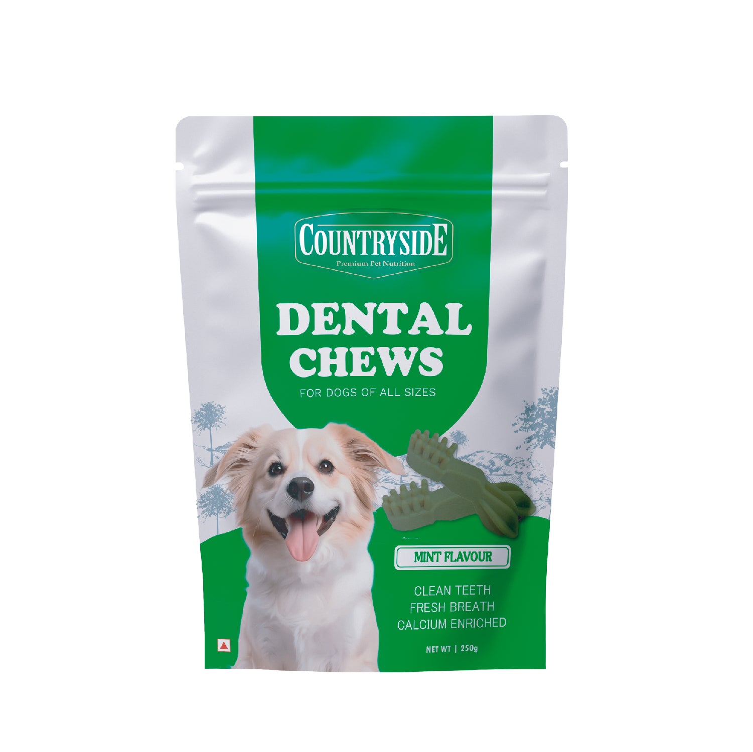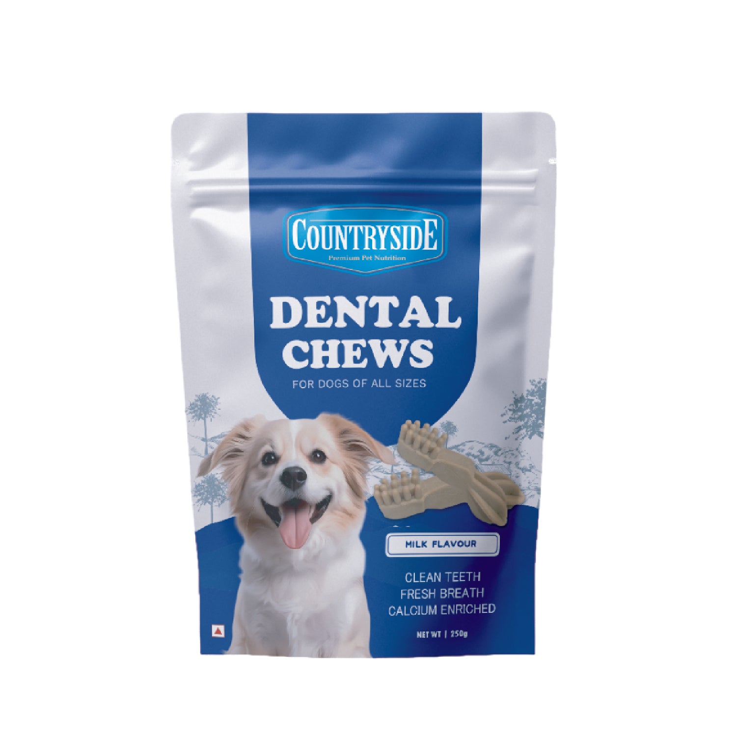 A tasty dental chew treat designed to support your dog's dental health. Enriched with calcium, it helps strengthen teeth and bones while gently cleaning your pet's teeth. Regular chewing reduces plaque buildup, supports healthy gums, and promotes fresh breath, ensuring both dental care and a delicious snack for your dog.