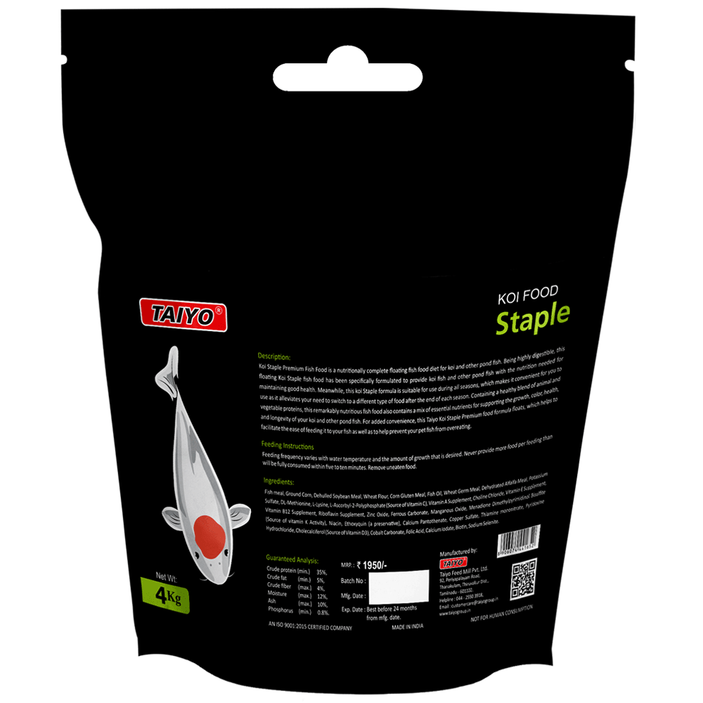 Koi staple premium fish food is a nutritionally complete floating fish food diet for koi and other pond fish. Being highly digestible, this floating koi staple fish food has been specifically formulated to provide koi fish and other pond fish with the nutrition needed for maintaining good health.