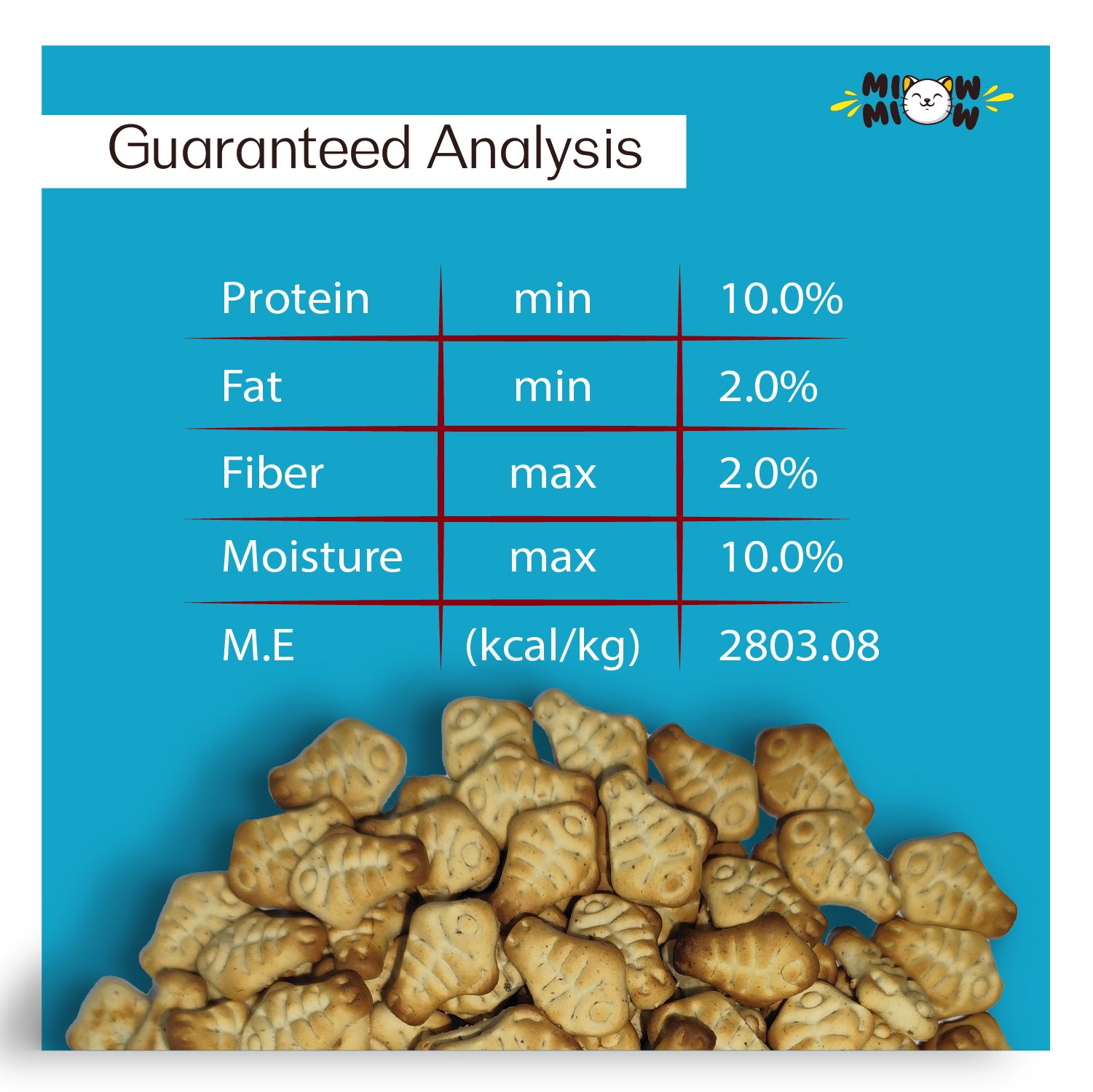 Natural Ingredients: We believe in quality you can trust, which is why our Miow Miow cat biscuits are made with natural ingredients, free from artificial flavors and preservatives. You can feel confident that you’re giving your cat a wholesome treat.