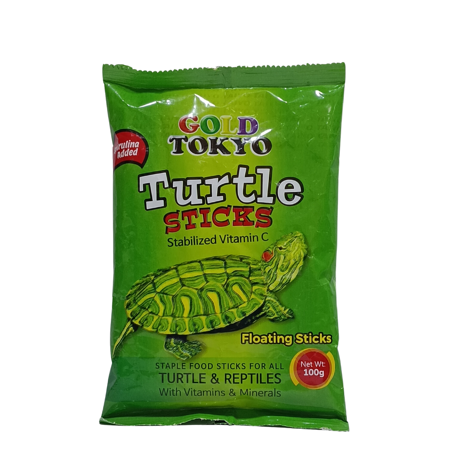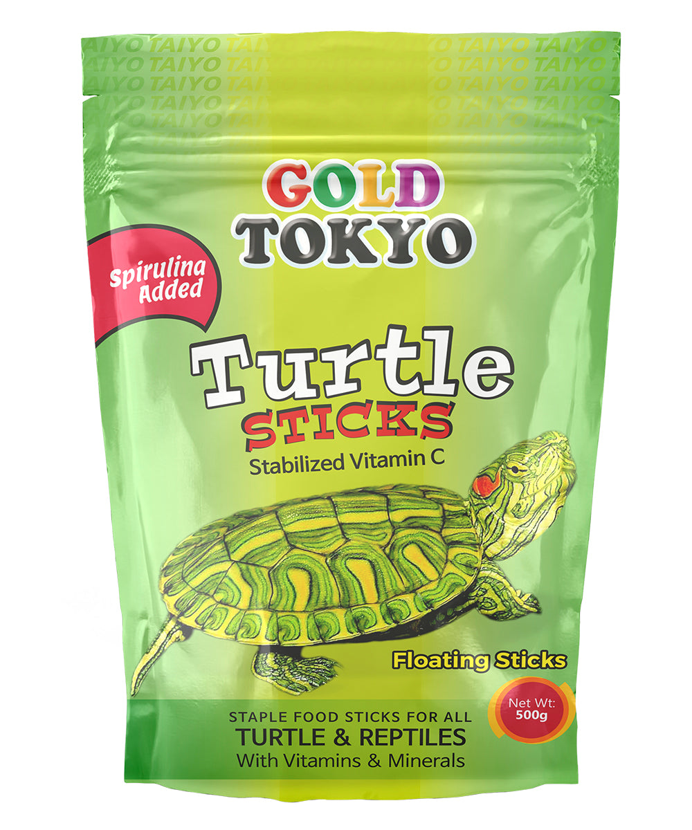 GOLD TOKYO Turtles Sticks is a complete and balanced nutritional staple food for all turtles, others reptiles and aquatic amphibians as well. It contains all high quality protein, vitamins and minerals to promote growth and keep turtles in healthy conditions.