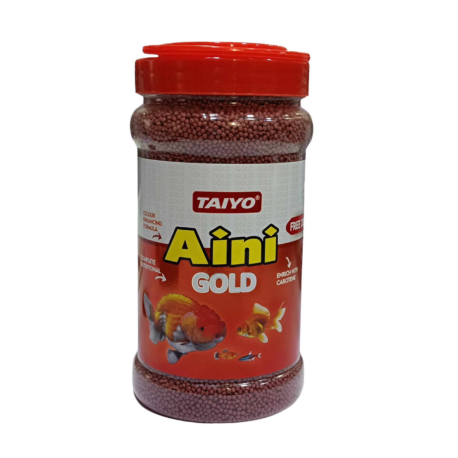 Aini - Gold Fish food is specially formulated for all varieties of Fresh Water Fish The formulation is designed to provide the proper nutrition required for healthy growth, body shape, coloration and sexual maturity.
