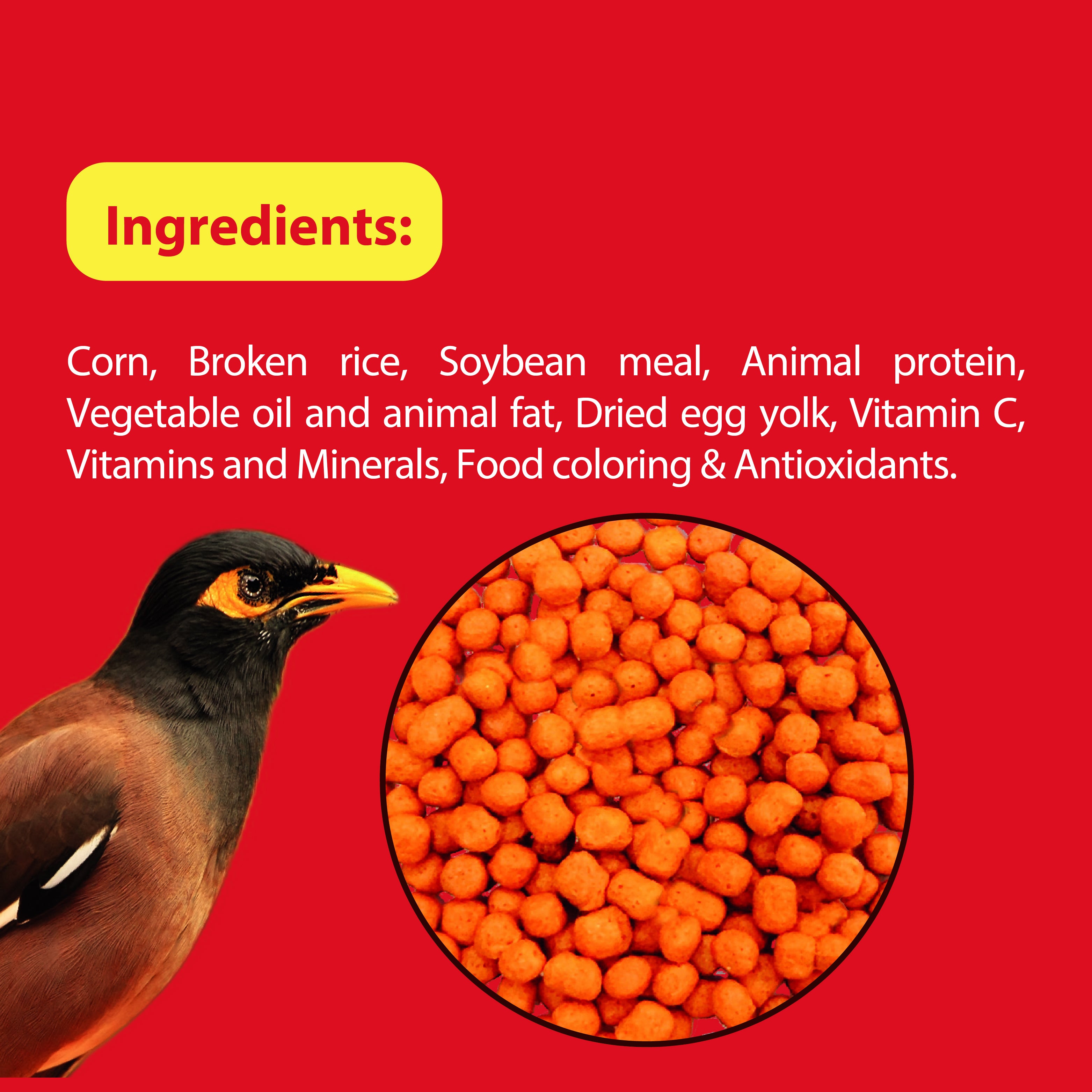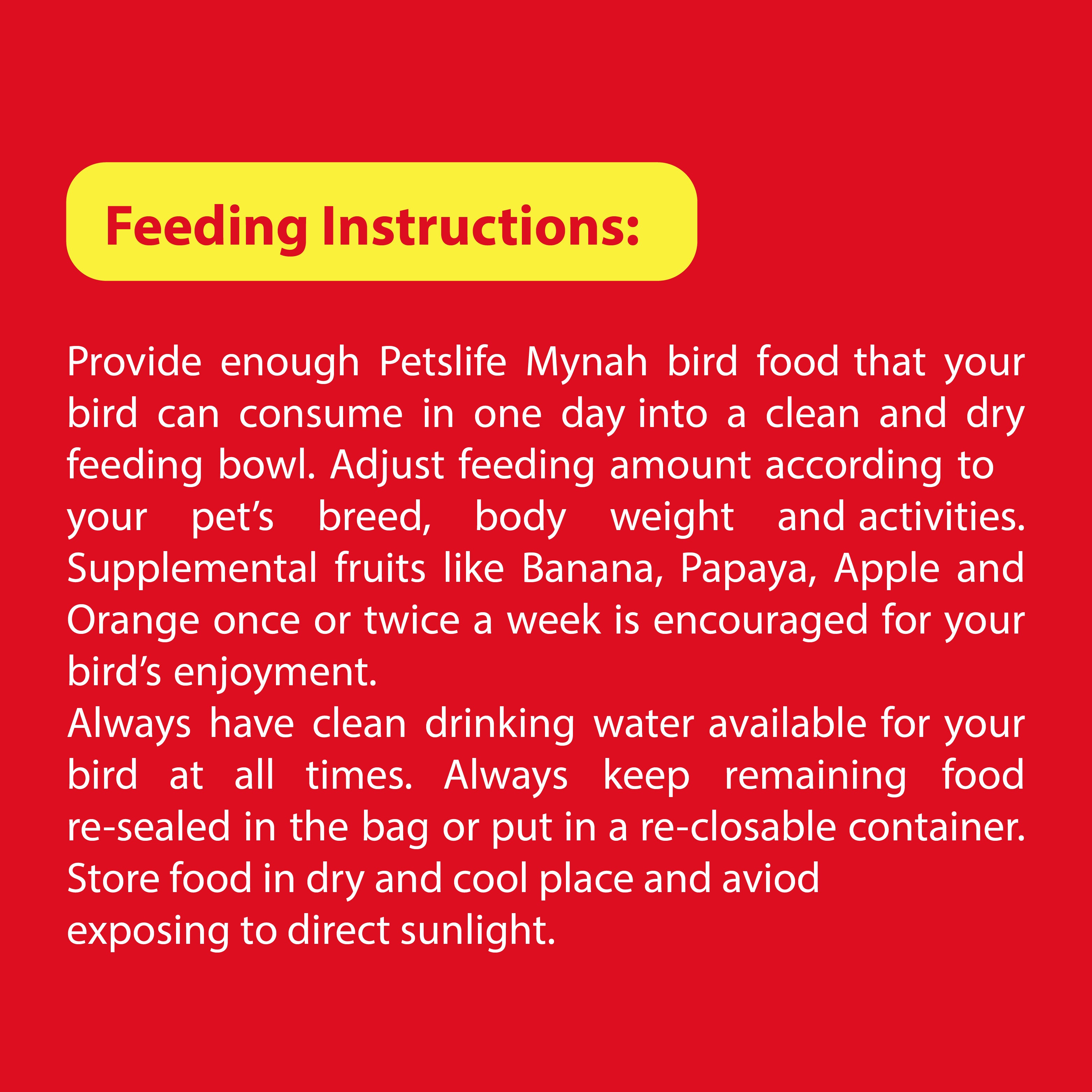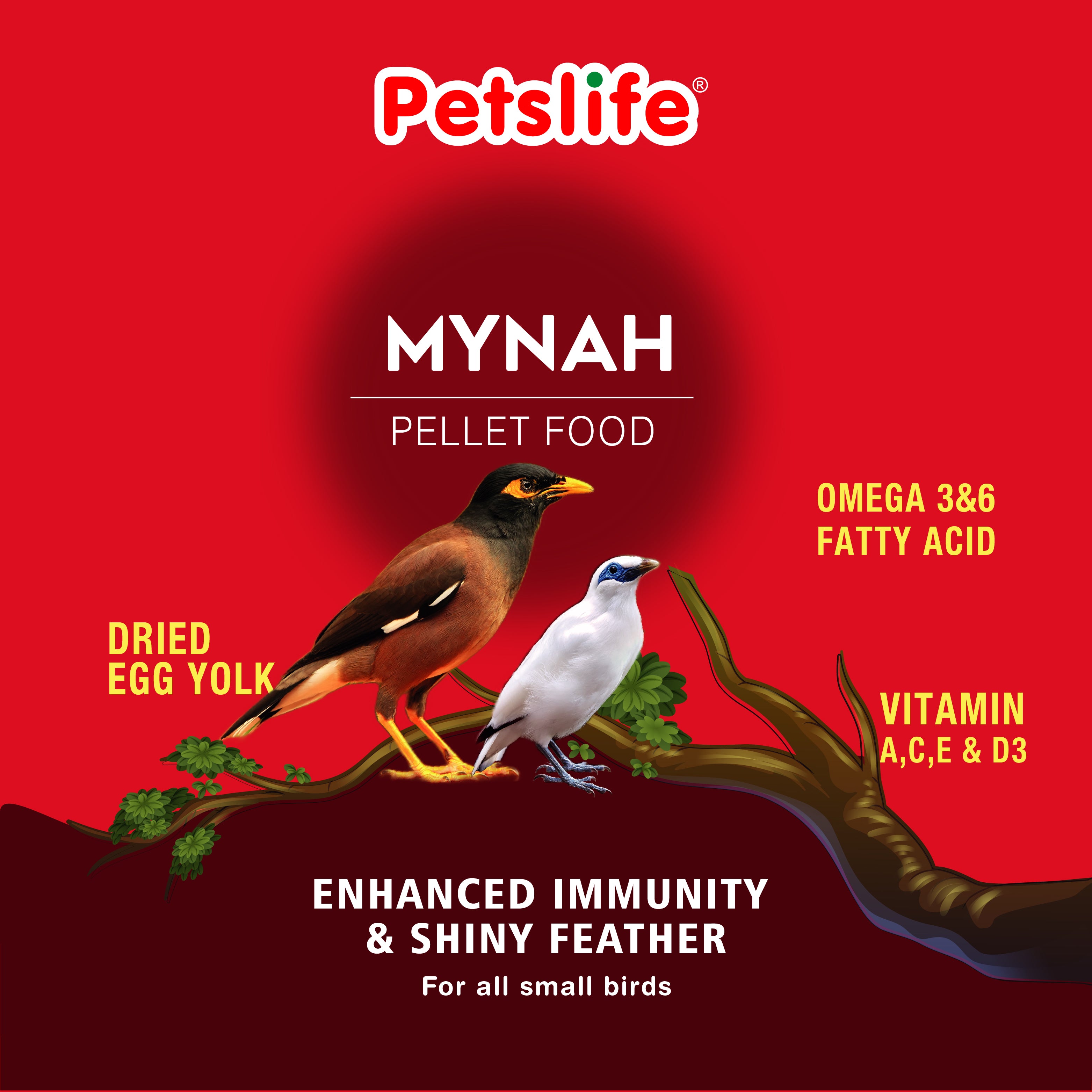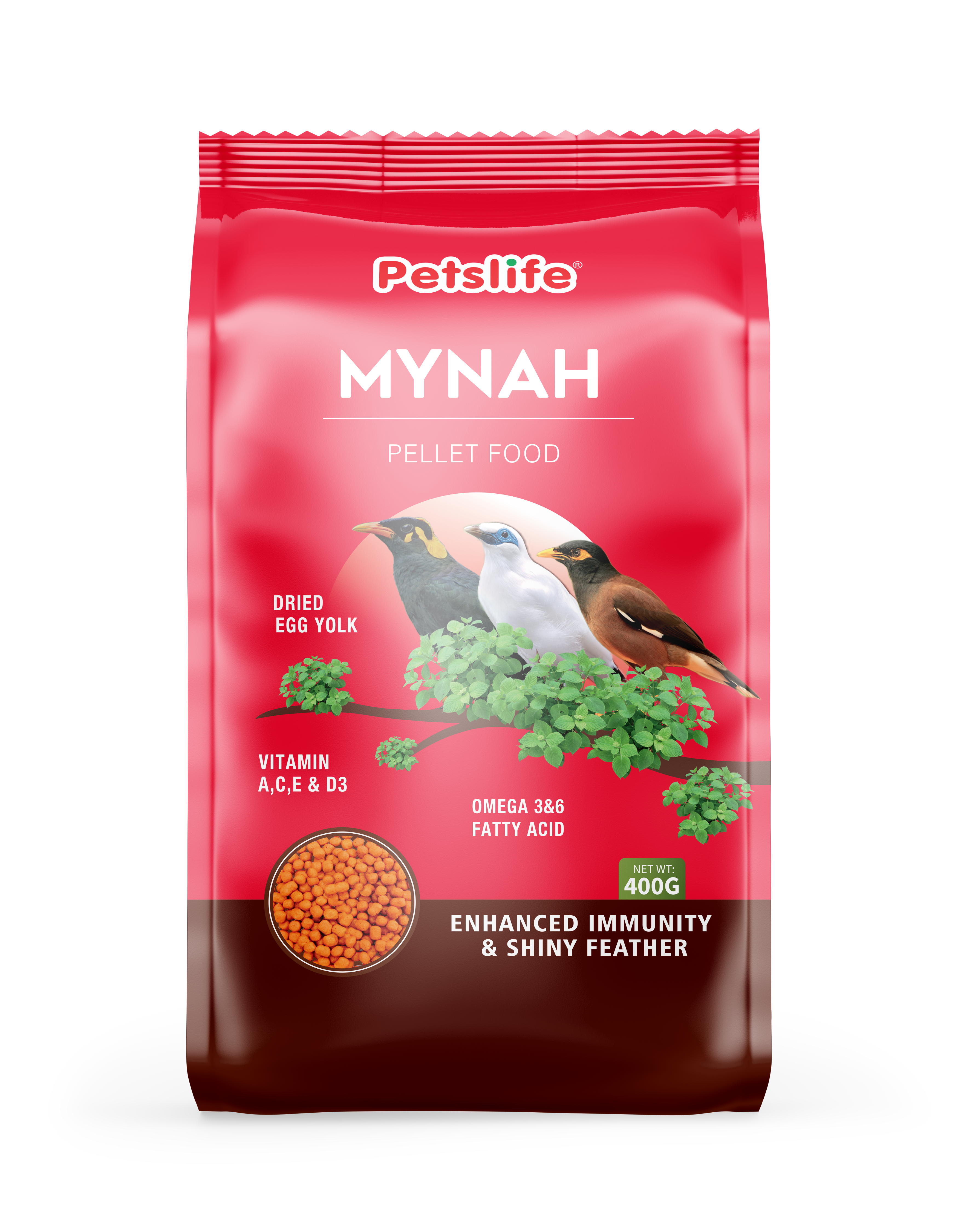 Petslife Mynah bird food is specifically developed to provide complete and balanced nutrition for mynahs, Starlings and other related species. This enhanced Immunity & Shiny Feather will strengthen your bird’s immune system and intensify the feather’s radiant color.